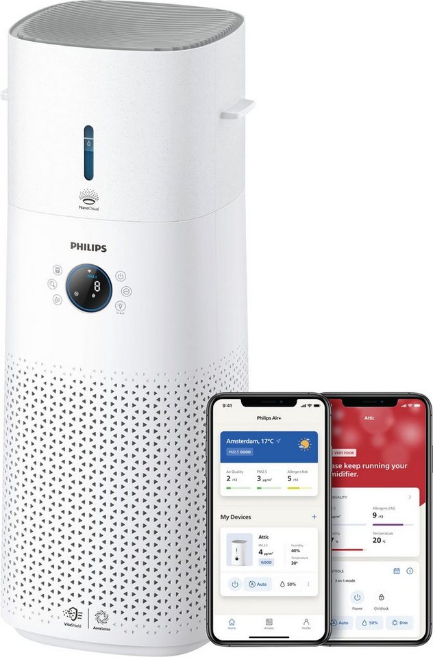 Dieses Kombigerät vereint die Funktionen von Luftreinigung und -befeuchtung, um ein gesundes Raumklima zu schaffen. Es sorgt für eine effektive Reinigung der Luft von Allergenen und Schadstoffen, während gleichzeitig die optimale Feuchtigkeit im Raum erhöht wird. Die leise Betriebsweise ermöglicht einen ungestörten Einsatz, besonders in Ruhezeiten oder beim Schlafen.