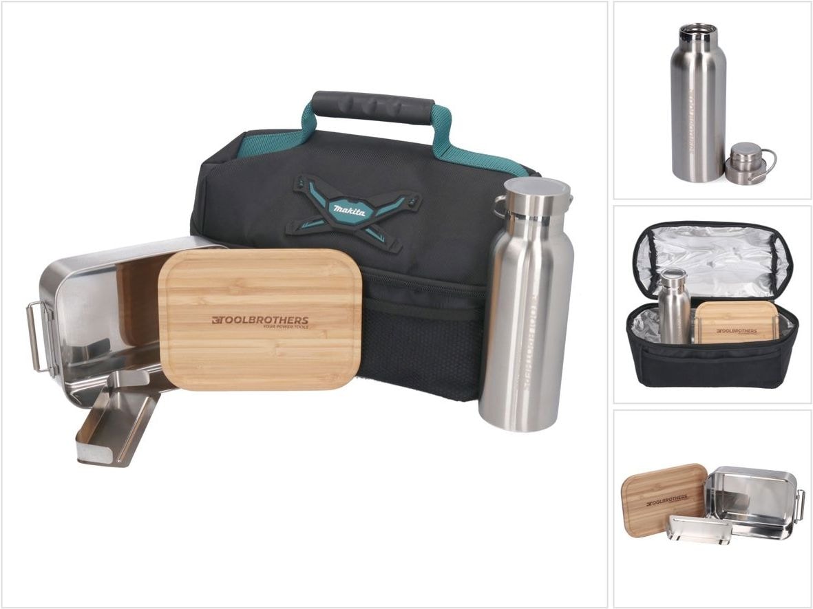 Makita Toolbrothers Lunchpaket mit Makita Isoliertasche + Toolbrothers Fan Edelstahl Brotdose mit Bambus DeLunchbox