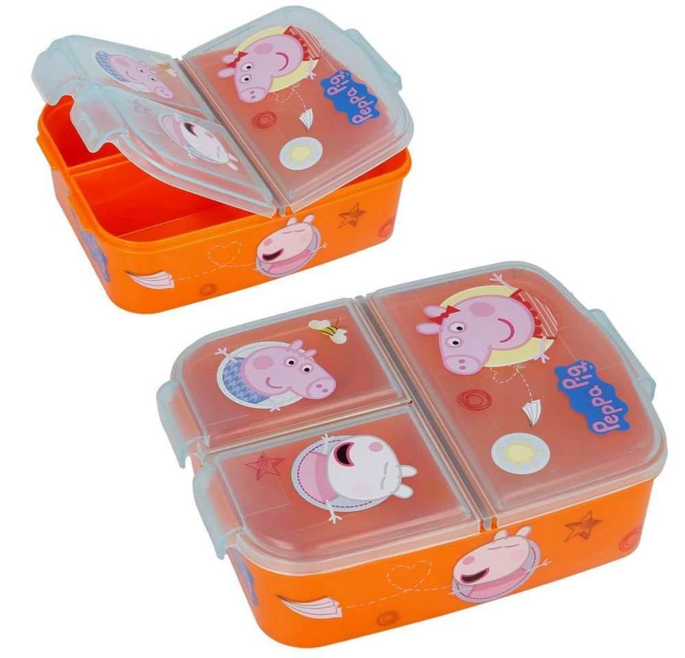 • Die Peppa Pig Lunchbox bietet drei separate Fächer, ideal für belegte Brote, Gemüse und Snacks