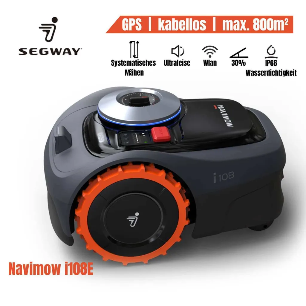 Präzises Mähsystem mit 3 freischwingenden Klingen, mehrstufige elektrische Schnitthöhenverstellung, Ultraschallsensoren, Neigungssensoren, MY iMOW® App Steuerung, Dockingstation.
