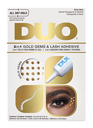 ARDELL DUO 2-in-1 & Gold Gems - Wimpernkleber durchsichtig plus goldene Glitzersteinchen | für Kunstwimpern & Körper Verzierungen | Transparent & starker Halt künstlicher Wimpern | 3,5gr.