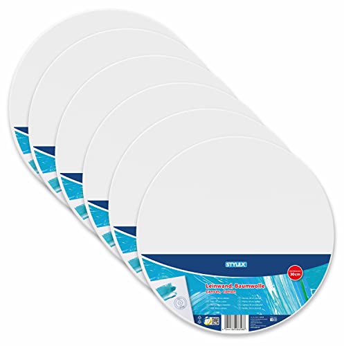 Stylex 28658-P6 - Keilrahmen rundDurchmesser 30 cm, mit Leinwand aus 100 % Baumwollgewebe bespannt, grundiert, für Öl-, Acryl- und Temperafarben, Gouache - Malerei, 6 Stück