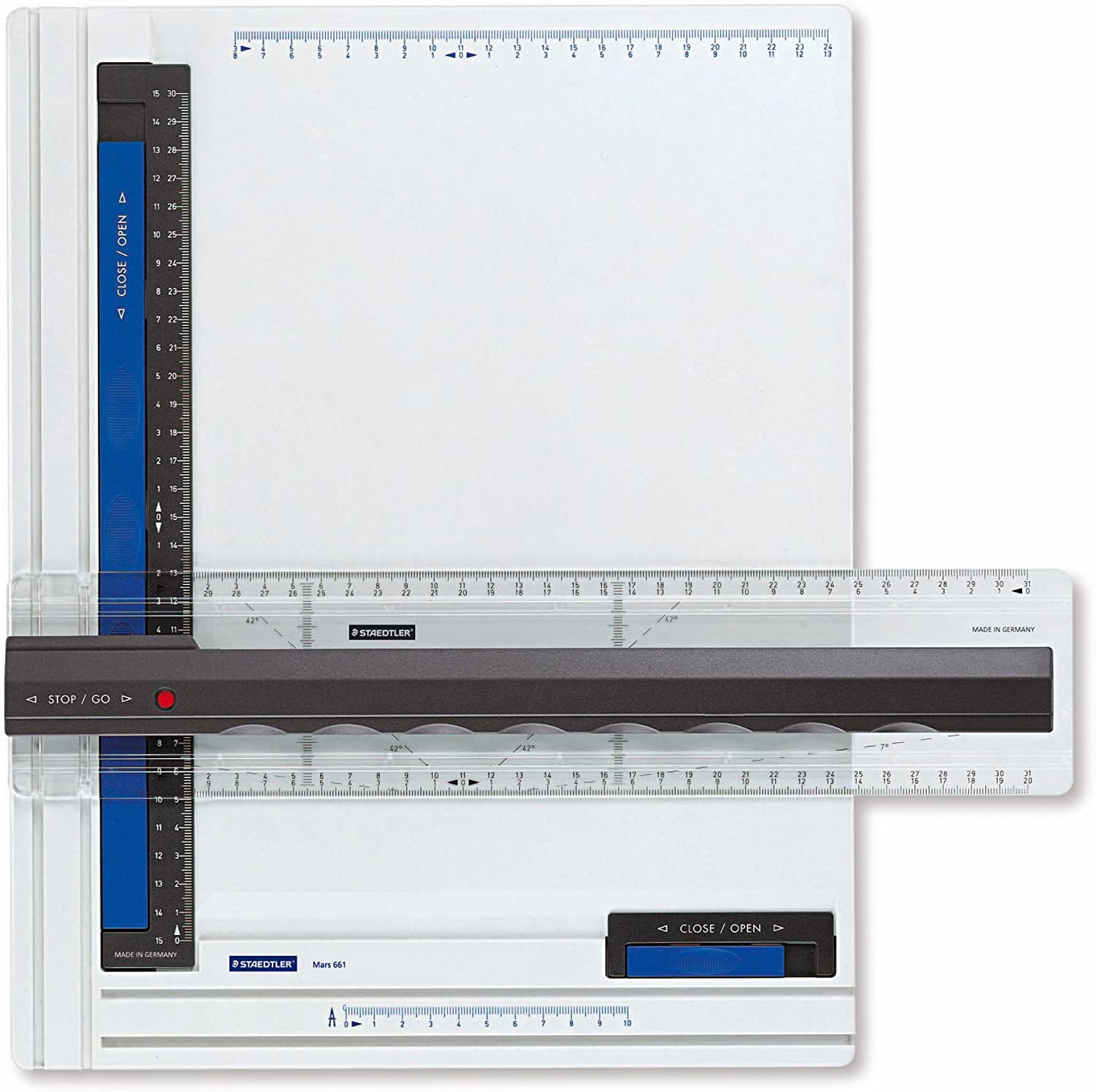 | Beschreibung | Mars® 661 Zeichenplatten Einzelprodukt DIN A4. Mit Parallel-Zeichenschiene mit beidseitiger Skalierung. Komfortable Einhand-Doppelarretierung an jeder beliebigen Stelle der Griffleiste. Doppelnutführung für besonders sanftes, ruckfreies Gleiten des Lineals. Arretierungs- und Freilaufanzeige durch Signalfarben. Blattklemmschienen an beiden Seiten der Zeichenplatte für sichere Befestigung von Papier. Skala mit Einstichloch zur präzisen Radieneinstellung von Zirkeln. Aus schlag- und bruchfestem Kunsstoff. Mit rutschfesten Gummifüßen. |