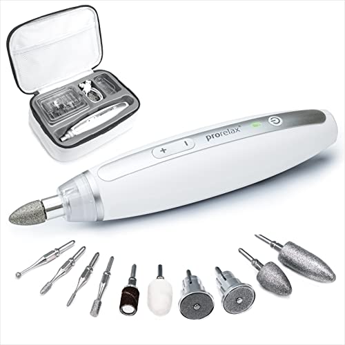 Das Maniküre-/Pediküre-Set von prorelax bietet eine professionelle Hand- und Fußpflege für Damen und Herren, sowohl zu Hause als auch unterwegs. Mit 10 hochwertigen Aufsätzen aus chirurgischem Stahl ermöglicht es eine Vielzahl von Anwendungen, um die Nägel optimal zu pflegen. Dank des Akkus ist das Set kabellos nutzbar und somit besonders praktisch in der Anwendung. Darüber hinaus verfügt das Set über LED-Licht, das für eine helle Beleuchtung sorgt und so präzises Arbeiten ermöglicht.
