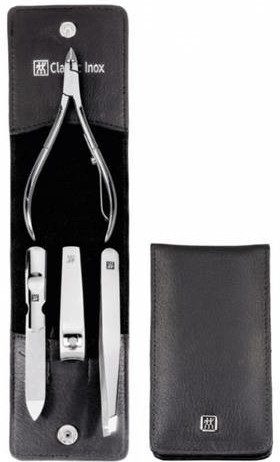 Das Zwilling Classic Inox Druckknopf Etui wird als qualitativ hochwertig und ansprechend im Design beschrieben. Es enthält alle notwendigen Werkzeuge für die Nagelpflege, jedoch hätte sich ein Kunde eine Nagelzange statt eines Zwickers gewünscht. Die Lieferung war schnell.