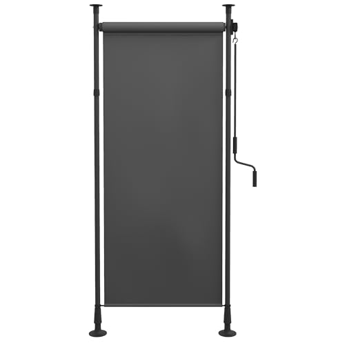 Outsunny Senkrechtmarkise mit SonnenschutzBalkonrollo 120 x 220-310cm Balkonsichtschutz mit Kurbel, Wetterfest Sichtschutz für Garten, Polyester, Dunkelgrau