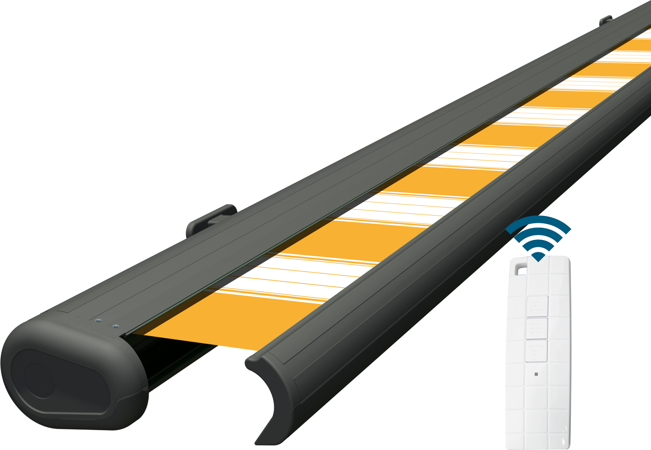 • Mit einer Gesamtbreite von 250 cm und einem Ausfall von 200 cm ist sie einfach zu montieren und wird mit Fernbedienung, Wandhalterungen und Nothandkurbel geliefert.