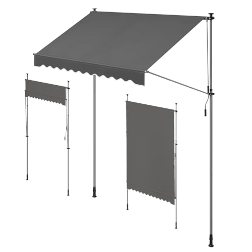 SONGMICS Klemmmarkisehöhenverstellbar, mit Handkurbel, UV-Schutz, 250 x 120 cm, anthrazit