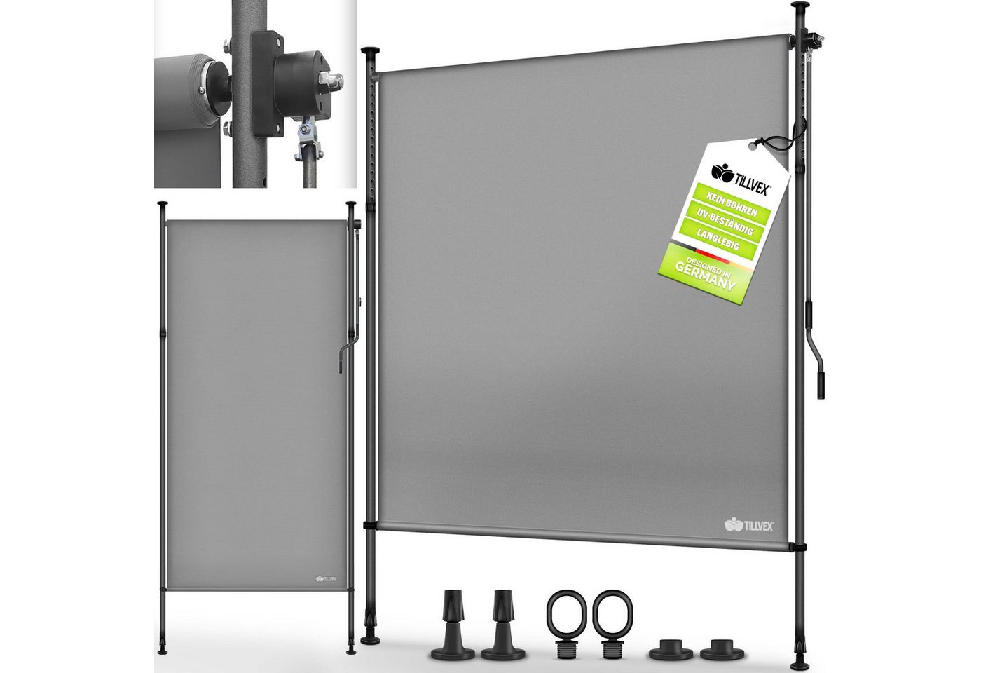 tillvex Klemmmarkise Senkrechtmarkise mit Handkurbel für Balkon ohne Bohren (Blickdicht & Wetterfest)