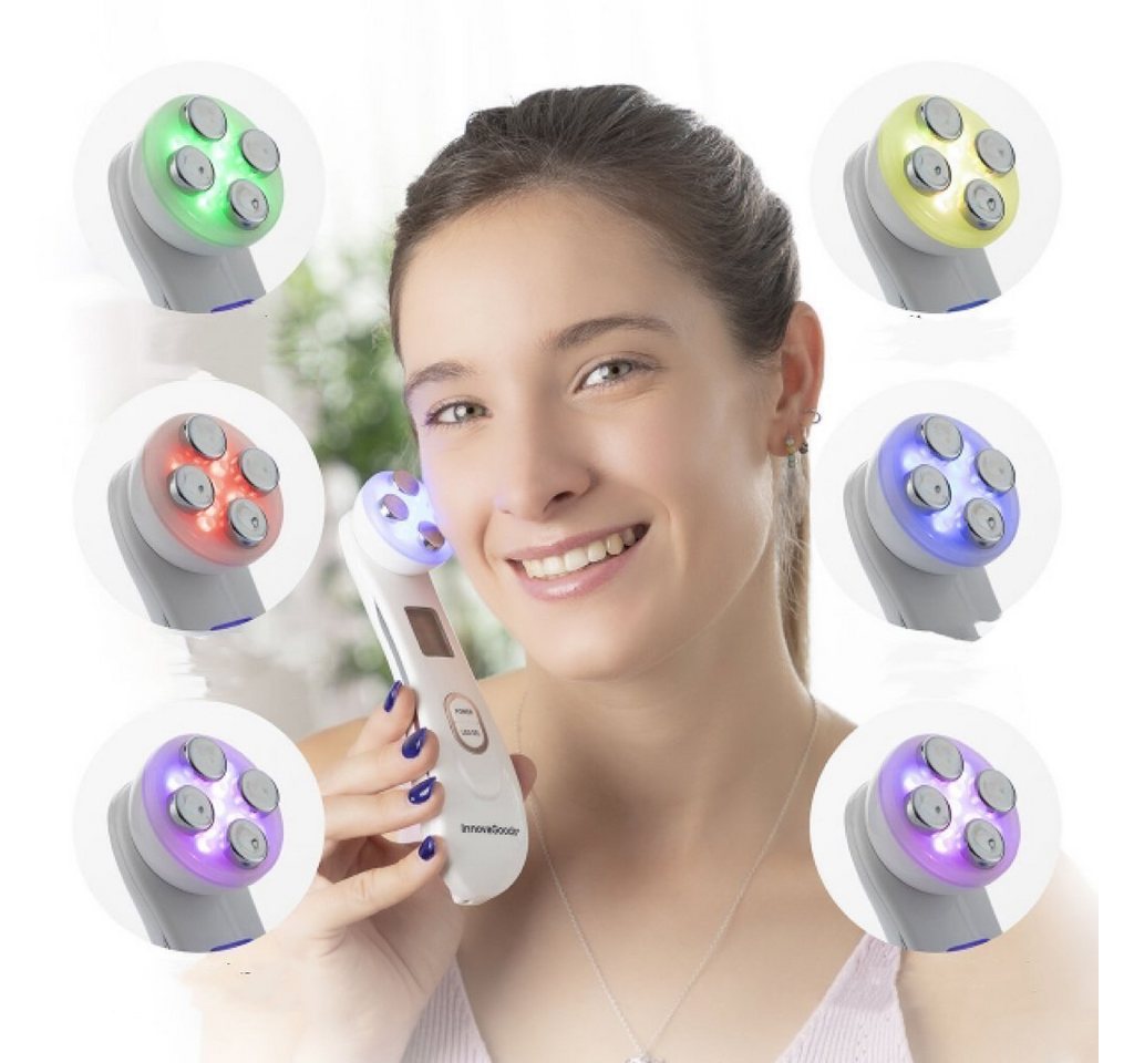 InnovaGoods Gesichtsmassagegerät mit Phototherapie und ElektrostimulationWeiß, Wiederaufladbar, 5 Intensitätsstufen