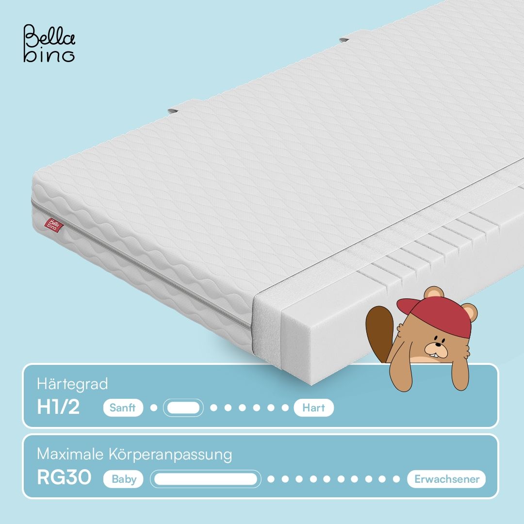 Ein herausragendes Merkmal der Bellabino 'Twist' ist die Wendbarkeit mit zwei Härtegraden, die eine Anpassung an das wachsende Kind ermöglicht. Diese Flexibilität in der Nutzung ist eine wichtige Überlegung für Eltern, die eine langfristige Lösung suchen. Zudem ist der Bezug aus atmungsaktivem und hautfreundlichem Polyester gefertigt, was für ein frisches Schlafklima sorgt.