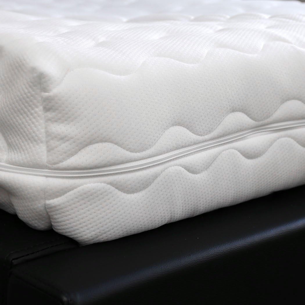 **Produktbeschreibung:** Erfrischen Sie Ihre Matratze mühelos mit dem Ersatz Matratzenbezug von Bettwaren Shop. Die Marke Bettwaren Shop bürgt für Qualität, denn der Bezug wurde in Deutschland hergestellt und ist allergikergeeignet. Bei Bedarf können Sie den Bezug problemlos bei bis zu 60°C waschen. Die clevere Konstruktion des Bezugs ermöglicht eine einfache Handhabung: Dank des rundum verlaufenden Reißverschlusses können Sie die Matratze spielend leicht beziehen und den Bezug für die Wäsche problemlos abnehmen. - Die Doppeltuch-Strickware mit einem Gewicht von ca. 200g/m² sorgt für angenehmen Komfort und ist mit einer ansprechenden Wellensteppung verziert, die mit ca. 200g/m² Vlies versteppt ist. - Für Allergiker ist dieser Bezug besonders geeignet und trägt zu einem gesunden Schlafklima bei. - Bestellen Sie die passende Größe und Höhe entsprechend dem Kern Ihrer Matratze und verleihen Sie Ihrer Schlafunterlage ein frisches Aussehen mit diesem hochwertigen Ersatz Matratzenbezug. - Material: 100% Polyester