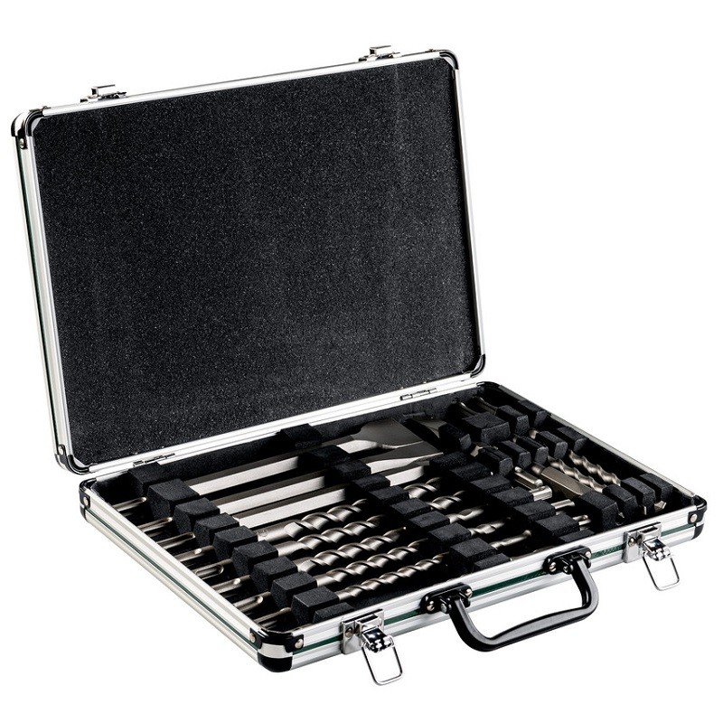 Das Metabo SDS-plus Bohrer-/ Meißelset SP bietet eine hohe Qualität und Stabilität. Es enthält verschiedene Bohraufsätze und Meißel, die für saubere und gleichmäßige Löcher sorgen. Der praktische Koffer bietet dabei eine übersichtliche Aufbewahrungsmöglichkeit.