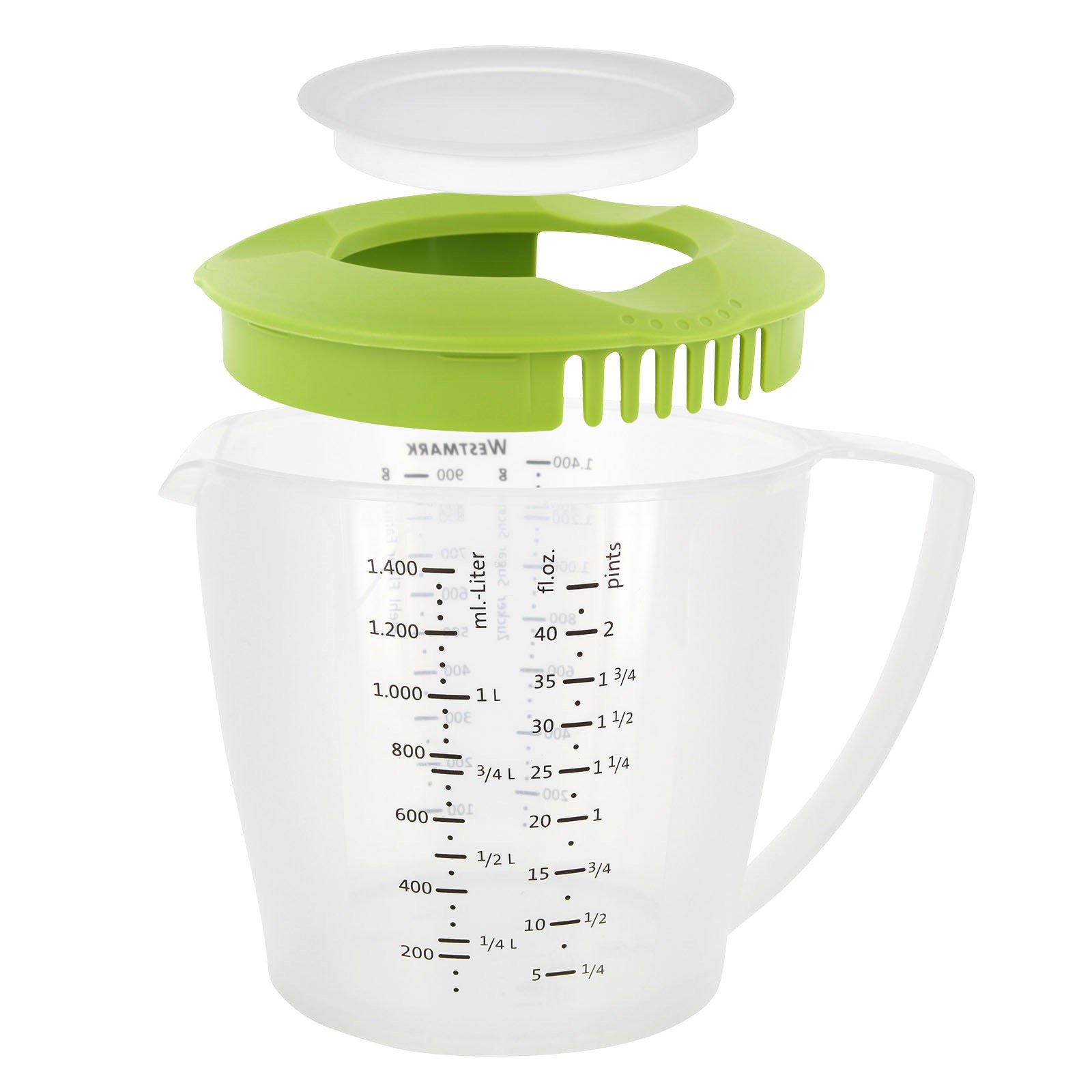 Der Westmark Rührbecher mit Spritzschutz ist ein hochwertiger und vielseitiger Küchenhelfer. Er eignet sich für verschiedene Zubereitungen wie Smoothies, Mayonnaise und Teige. Der Becher ist standfest, leicht zu reinigen und bietet einen Spritzschutz. Mit einem Fassungsvermögen von 1,5 Litern ist er ideal für große Mengen.