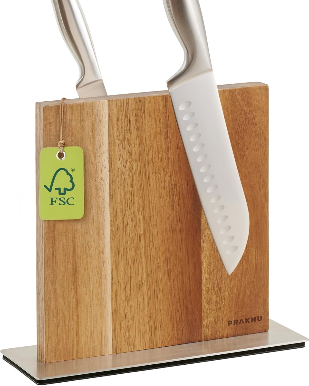 • Der Praknu Magnet-Messerblock ist aus FSC-zertifiziertem Akazienholz und Edelstahl gefertigt, was ihm Langlebigkeit und Eleganz verleiht.