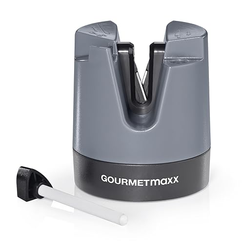 GOURMETmaxx Messerschärfer/Messerschleifer für alle Messer & Scheren | Automatische Winkeleinstellung & kompaktes Design | Mit Polierstab [Schleifblock]