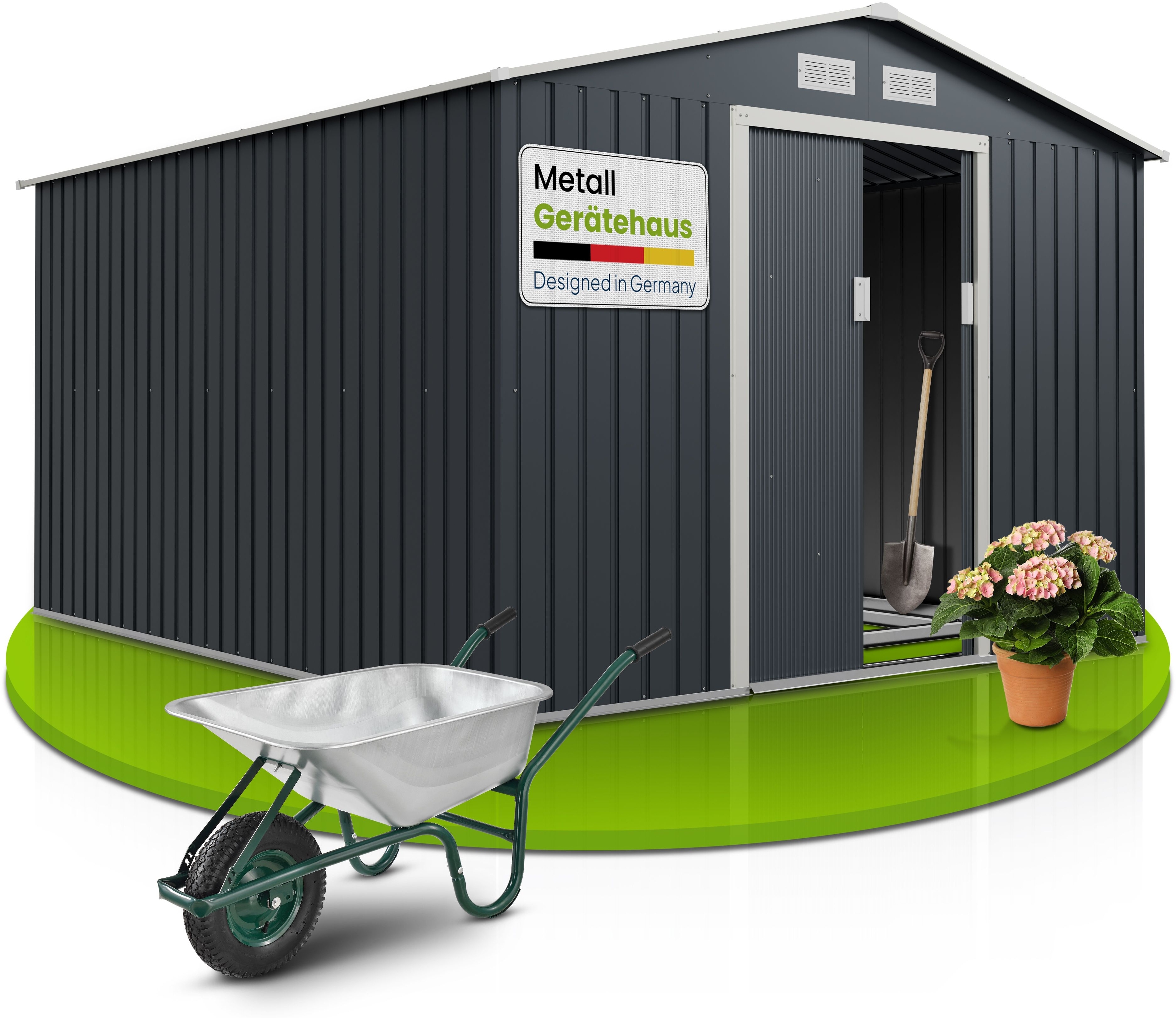 • Der mitgelieferte Metall-Fundamentrahmen sorgt für eine stabile Basis und erleichtert die Selbstmontage des Geräteschuppens.