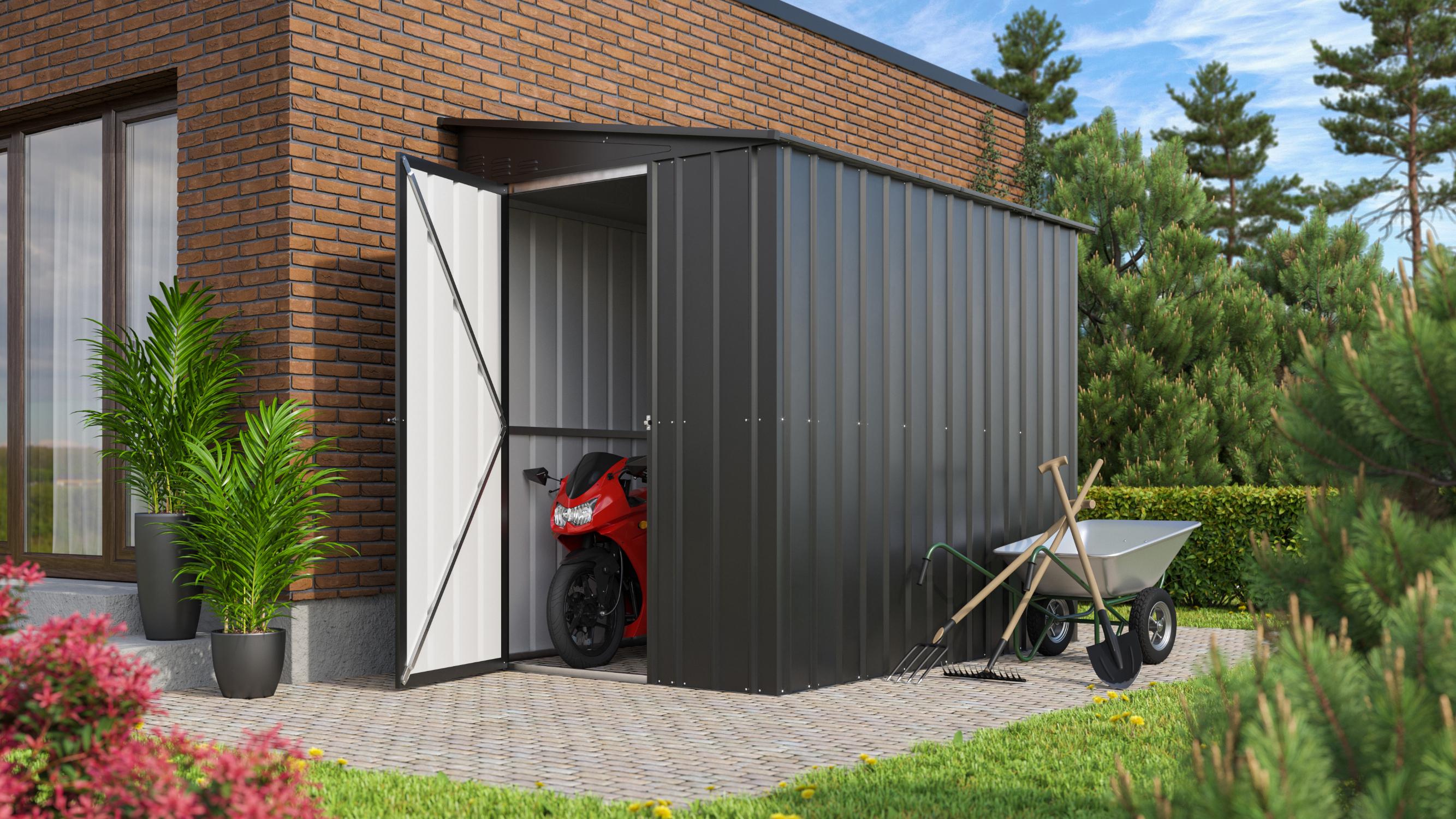 Das Globel Industries Metall Anlehn-Gerätehaus "Lean-To 58" ist die ideale Lösung, um Ihre Staufläche im Garten zu erweitern. Mit einer Fläche von 3,75 m² bietet es genügend Platz für Fahrräder, Schubkarren, Feuerholz und mehr. Das Anlehn-Gerätehaus zeichnet sich durch seine hohe Standfestigkeit und gute Erreichbarkeit aus. Mit einer Deckenhöhe von über 2 m bietet es eine angenehme Stand- und Arbeitshöhe. Die Wandstärke von 0,3 mm ist dicker als bei vergleichbaren Metallgerätehäusern und sorgt für eine robuste Konstruktion. Der feuerverzinkte Stahl ist mit 4 Schichten Schutzlack versehen, um Kratzer und Rostbildung zu verhindern. Zusätzlich sind die Ecken mit Kunststoffteilen geschützt, um Verletzungen beim Aufbau zu vermeiden. Die Schrauben des Gerätehauses sind in ein Kastenprofil geschraubt, um scharfe Kanten im Innenbereich zu vermeiden. Ein verstärkter Mittelrahmen sorgt für zusätzliche Stabilität. Lüftungsschlitze im Giebel gewährleisten eine gute Belüftung an heißen Tagen. Das Gerätehaus verfügt über eine Vorrichtung für ein Vorhängeschloss, um Ihre Wertsachen sicher aufzubewahren. Mit einer Schneelast von 100 kg/m² ist das Gerätehaus standfest und langlebig. Das Premium-Gerätehaus wird als Bausatz ohne Boden geliefert und kann frei oder an einer Hauswand aufgestellt werden. Es verfügt über ein Pultdach und eine Schwingtür, die links oder rechts eingebaut werden kann. Das Globel Industries Metall Anlehn-Gerätehaus "Lean-To 58" ist aus hochwertigem, feuerverzinktem Stahl gefertigt und bietet langfristigen Schutz gegen Korrosion und Kratzer. Mit einer Türhöhe von ca. 172 cm und einer Wandstärke von 0,3 mm ist es ein stabiles und sicheres Gartenhaus. **Highlights** - Hohe Standfestigkeit und gute Erreichbarkeit als Anlehn-Gerätehaus - Über 2 m Deckenhöhe für angenehme Stand- und Arbeitshöhe - 0,3 mm Wandstärke für eine robuste Konstruktion - Feuerverzinkter Stahl mit 4 Schichten Schutzlack gegen Kratzer und Rost - Verstärkter Mittelrahmen für hohe Stabilität **Produkteigenschaften** - Fläche: 3,75 m² - Deckenhöhe: über 2 m - Wandstärke: 0,3 mm - Schneelast: 100 kg/m² - Material: feuerverzinkter Stahl mit 4 Schichten Schutzlack - Türhöhe: ca. 172 cm - Lufteinlass im Giebel für gute Belüftung **Lieferumfang** - Metall Anlehn-Gerätehaus "Lean-To 58" in anthrazit - Bausatz ohne Boden