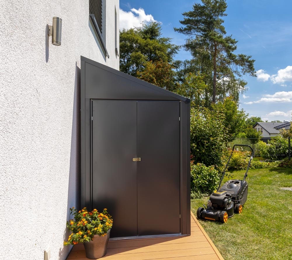 Name Spacemaker Metall Gerätehaus Anlehnhaus 410 | Grau