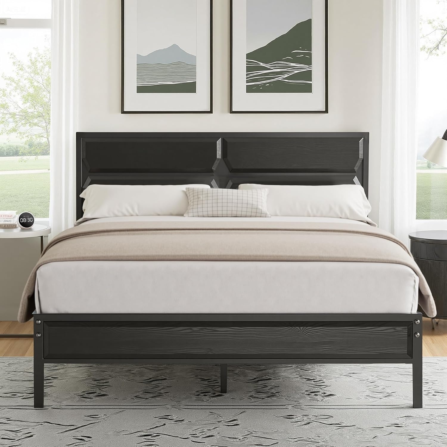 | Name | VECELO Bettgestell, 140x190 cm, mit Kopfteil aus Holz, Plattformrost aus Metall, mit soliden Lattenhalterungen und Stauraum, einfache Montage, Schwarz |