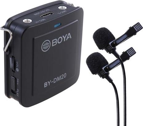 • Das Boya BY-DM20 ist ein flexibles Dual-Lavalier-Mikrofon, das mit Apple Lightning-, USB-C- und USB-Anschlüssen kompatibel ist