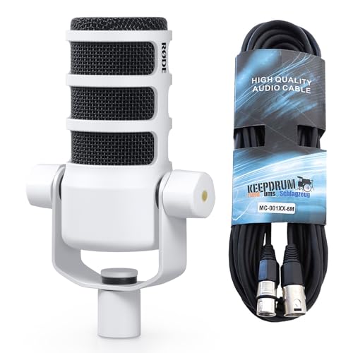 RØDE Podmic professionelles Podcast-Mikrofon Weiß + keepdrum XLR-Kabel