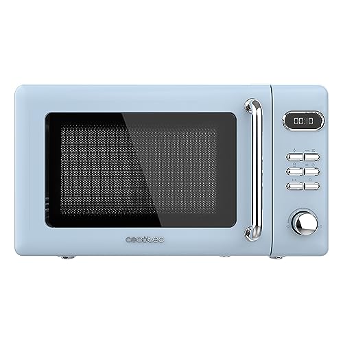 Die Cecotec Proclean 5110 Retro Blue ist eine stylische Mikrowelle mit einem Volumen von 20 Litern und einer Grillfunktion. Sie bietet 8 Programme und einen Auftaumodus, die das Aufwärmen von Speisen erleichtern. Mit einer Leistung von 700 Watt ist sie für kleinere Haushalte geeignet, jedoch etwas langsamer als leistungsstärkere Modelle. Die Sicherheitsverriegelung ist ein Plus für Haushalte mit Kindern. Die kleinere Schrift auf den Drehknöpfen kann die Bedienung erschweren.