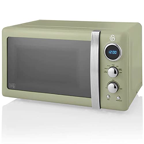 Die Swan Retro SM22030GNEU Mikrowelle bietet ein ansprechendes Retro-Design und ist einfach zu bedienen. Sie verfügt über verschiedene Heizmodi und eine Zeitanzeige. Allerdings gibt es einige Kritikpunkte bezüglich der Maßangaben und der Qualität des Materials.