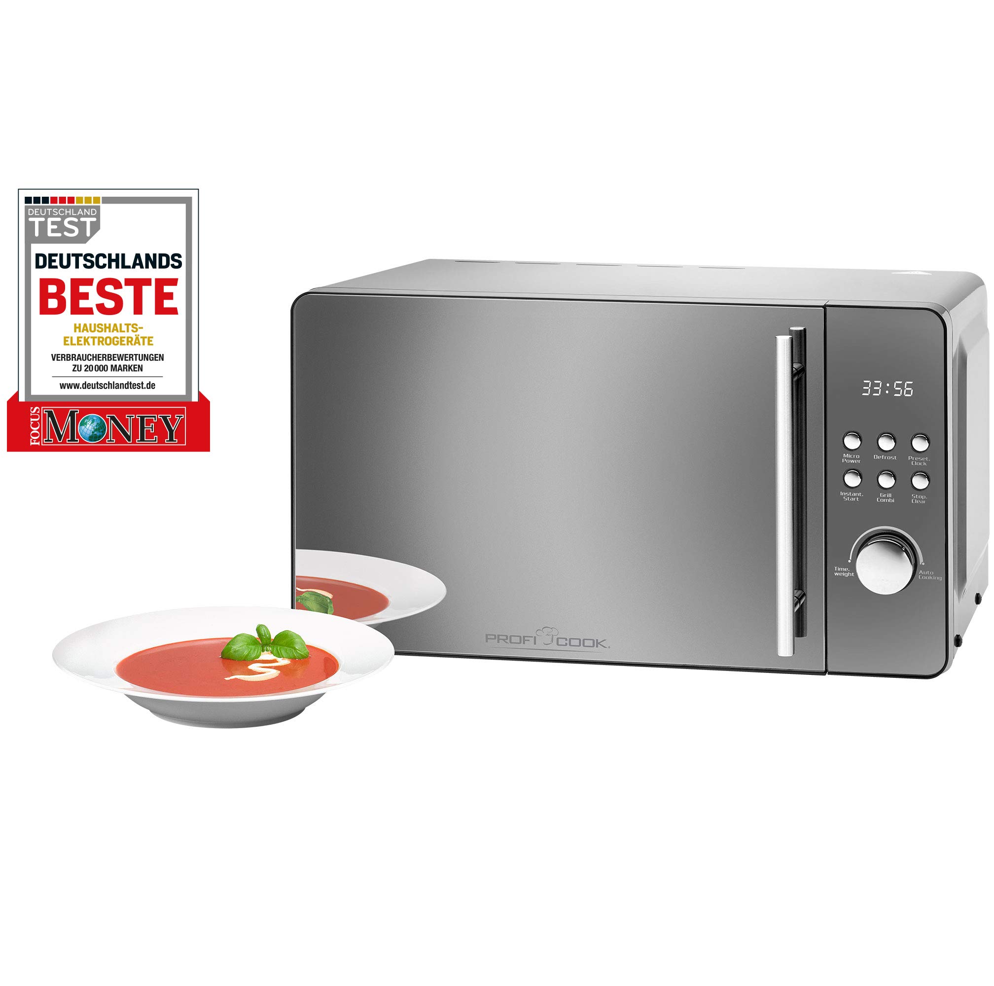 Die ProfiCook PC-MWG 1175 ist eine vielseitige Mikrowelle mit Grillfunktion, die in jeder Küche ihren Platz findet. Sie bietet eine einfache Nutzung und das ansprechende Design macht sie zu einem Blickfang. Besonders praktisch ist der Griff, der unschöne Fingerabdrücke auf dem Gehäuse verhindert.