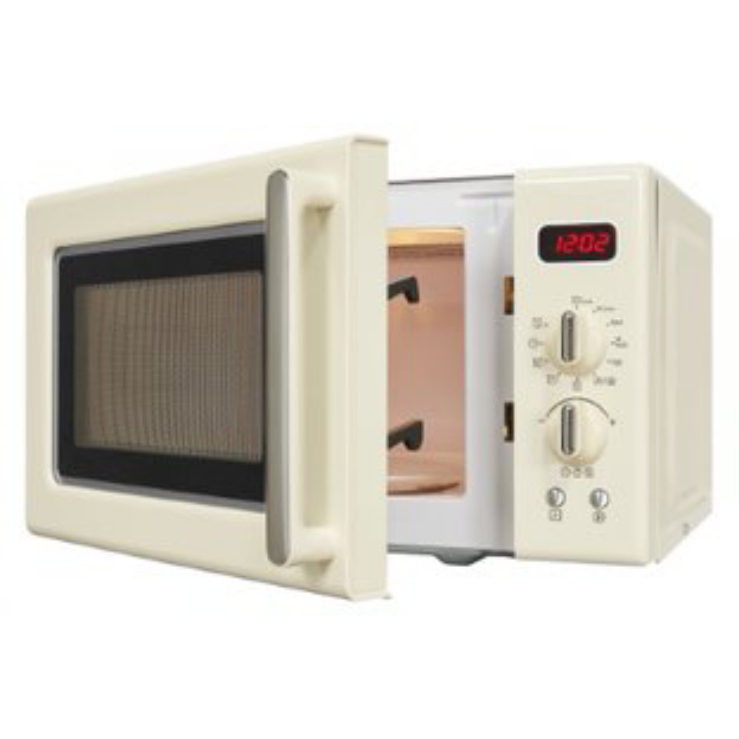 Die Mikrowelle mit Grill bietet eine einfache Bedienung und ermöglicht das Erwärmen, Auftauen und Grillen von Lebensmitteln. Ihr ansprechendes Retro-Design sorgt für einen ästhetischen Blickfang in der Küche. Trotz ihrer kompakten Größe ist sie leicht zu reinigen und überzeugt durch ein gutes Preis-Leistungs-Verhältnis. Die intuitive Nutzung nach einer kurzen Einarbeitungszeit macht die Handhabung besonders benutzerfreundlich.