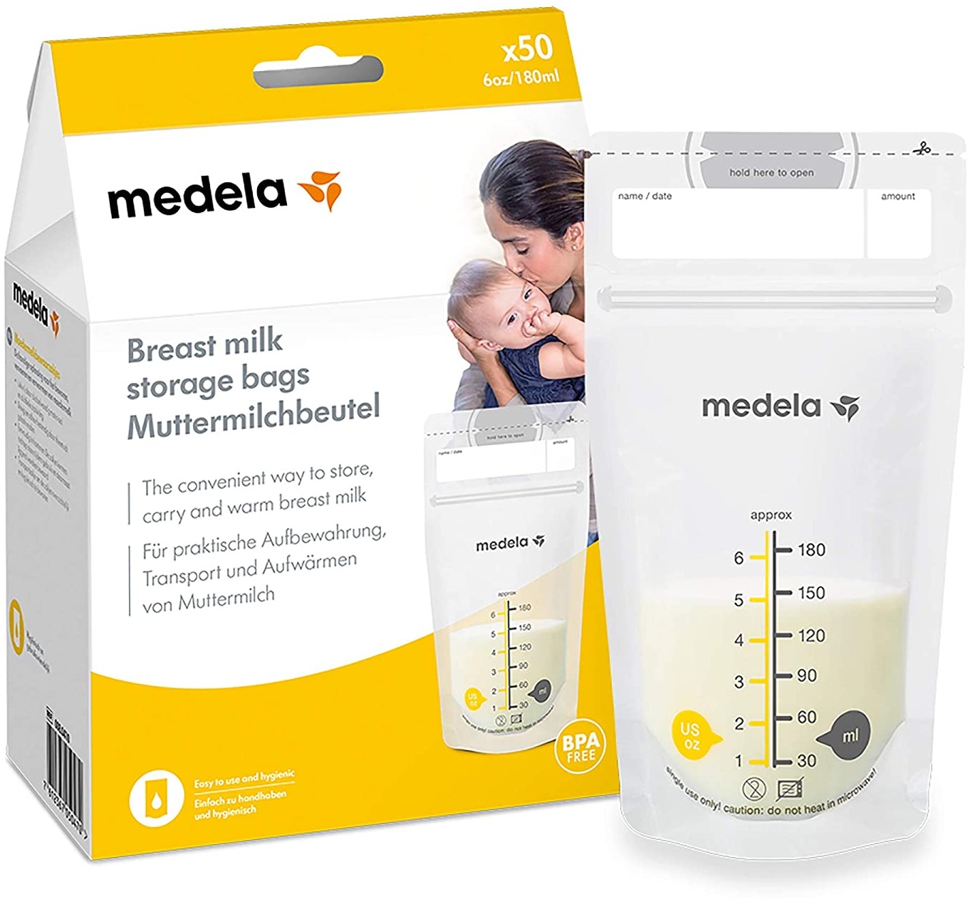 | Name | Medela Muttermilchbeutel, hygienisch, platzsparend, auslaufsicher (50 Stück) |