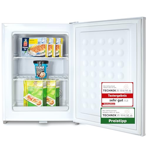 Stillstern Mini Gefrierschrank (42L) -18°C, Eiswürfelschale, Schloss, Türanschlag wechselbar - 4-Sterne Tiefkühlschrank in elegantem Design für Camping/Büro (Weiß)