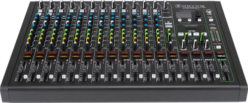 • Das Mackie Onyx 16 ist ein Mischpult mit 16 Kanälen und insgesamt 18 Line-Eingängen