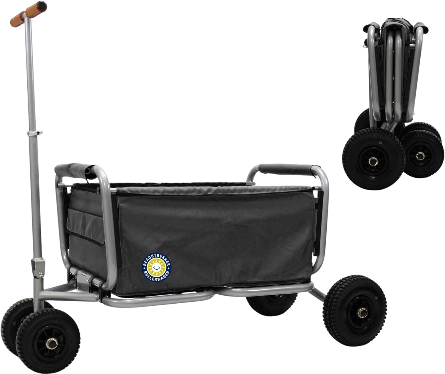 - Jetzt inkl. Feststellbremse - Mit nur wenigen Handgriffen ist der Bollerwagen reisetauglich zusammenklappbar und wieder aufzubauen - Der Beachtrekker LiFe hat einen geräumigen hochwertigen Textilkörper aus strapazierbarem Rucksackstoff - Eingenähte Polsterung vorne, hinten und am Boden des Bollerwagens - Eingenähte Tasche vorne am Bollerwagen - Stabiler Metallrahmen des Beachtrekker mit Pulverlackbeschichtung - Beste Seitenstabilität durch dicke Fiberglasstangen
