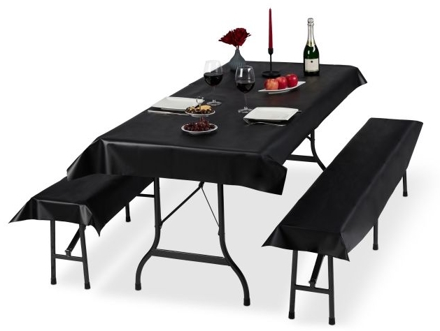 Die abwaschbaren Bierzeltgarnitur Auflagen von Relaxdays schützen und verschönern Ihre Bierbankgarnitur. Das 3er Set besteht aus einer Tischdecke (250x100cm) und 2 Bankauflagen (je 250x55cm). Ideal für alle gängigen Bierzeltgarnituren, wasserabweisend und wiederverwendbar. Perfekt für Geburtstage und andere Anlässe. **Highlights** - Schützt und wertet Bierbankgarnituren auf - Wasserabweisend und abwaschbar - Passend für alle gängigen Bierzeltgarnituren - 3-teiliges Set für Tisch und Bänke - Perfekt für verschiedene Anlässe wie Geburtstage **Produkteigenschaften** - Farbe: Schwarz - Maße Tischdecke: 250x100cm - Maße Bankauflagen: je 250x55cm - Abwaschbar und wiederverwendbar - Geeignet für alle gängigen Bierzeltgarnituren