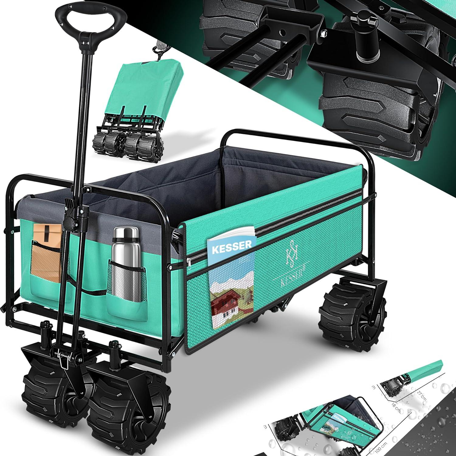 | Name | KESSER® Bollerwagen faltbar mit Breite Reifen Handwagen Transportkarre Gerätewagen | inkl. 2 Netztaschen | klappbar | Kunststoff-Reifen | bis 150 kg Tragkraft transportwagen Gartenanhänger Mint Grün |