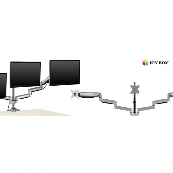 Die ICY BOX Monitorhalterung mit USB & Audio für 3 Monitore bis zu einer Größe von 32'' bietet eine platzsparende Lösung und ermöglicht die Befestigung von gleich drei Monitoren. Dank der hochwertigen Materialien ist das Produkt besonders robust und langlebig. Besonders positiv hervorzuheben ist auch das gute Preis-Leistungs-Verhältnis sowie die Möglichkeit, Monitore einfach ein- und auszuhängen. Zudem können die Monitore horizontal und vertikal rotiert werden.