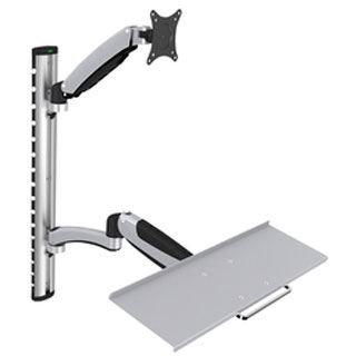Ergonomische Wandmontage mit integrierter Tastaturablage für einen aufgeräumten und platzsparenden Arbeitsplatz.