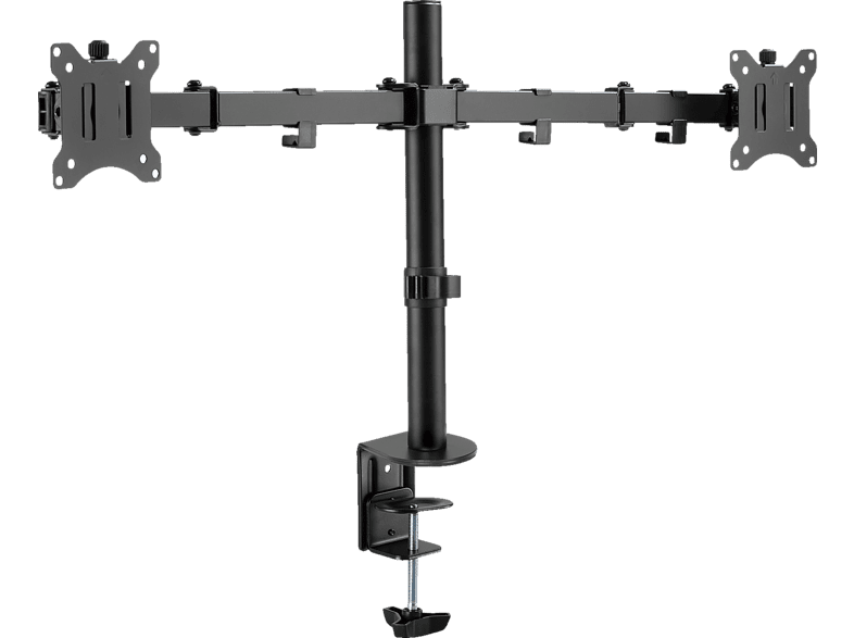 Die DIGITUS Dual Monitorhalterung 17-32'' bietet eine große Auswahl an Schrauben zur Befestigung der Monitore und ist optisch ansprechend. Der Preis ist attraktiv. Allerdings ist die Stange, an der die Monitore befestigt werden, zu kurz und die Halteplatten wackeln in der Monitorhalterung.