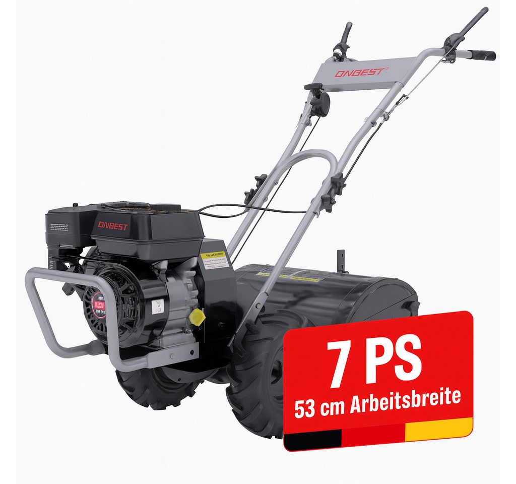 Im Zentrum der Onbest T4150 steht ein 5,6 PS starker Viertaktmotor mit 212 cm³ Hubraum, der Euro-V-konform ist und somit eine emissionsarme Nutzung ermöglicht. Die Maschine bietet eine Arbeitsbreite von 53 cm und eine verstellbare Arbeitstiefe bis zu 35 cm. Mit 12 robusten Hackmessern kann der Boden effizient und präzise bearbeitet werden. Laut dem Test von heimwerker-test.de überzeugt die Motorleistung durch ihre Kraft und Zuverlässigkeit, wodurch auch größere Flächen zügig bearbeitet werden können.