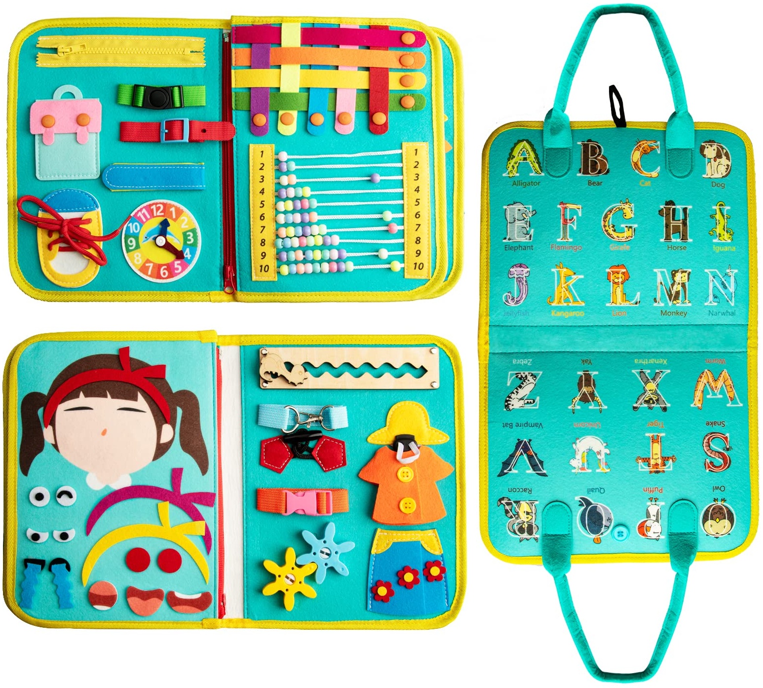 【20-in-1 Activity Board】Das neu verbesserte Achiyway Busy Board enthält etwa 20 verschiedene Arten von wichtigem Zubehör,wie z Gesichtspuzzles,Dinosaurier-Labyrinth, Reißverschlüsse, Knöpfe, Schnallen, Gürtel, Schnürsenkel, Uhr,Zauberpaste,geflochtener Gürtel,Rechenperlen,Zahnräder, Tieralphabete usw. Helfen Sie dem Baby, sich anzuziehen, zu zählen, zu lesen,Tiere zu erkennen und Gesichtsausdrücke zu erkennen. 【Unterhaltsames Lernspielzeug】 Dieses Montessori Spielzeug für 3 4 5 Jahre alte Babys hat ein einzigartiges lustiges Gesichtsbrett. Durch das Zusammensetzen des Gesichts können Kinder erfolgreich ihre Fähigkeit verbessern,Gesichtsausdrücke zu erkennen und die Hand-Auge-Koordination zu verbessern. 【Weich und sicher】Dieses sensorische spielzeug ist aus weichem, hochwertigem Filzmaterial,elastisch ohne harte Ecken,verletzt die Hände des Babys nicht und ist sehr leicht zu öffnen. Es fühlt sich weich an, sodass Sie sicher sein können,dass Ihr Kind kann es unbeschadet in den Händen halten. 【Perfektes Reisespielzeug】 Das Griffdesign dieses Lernspielzeugs für Vorschulkinder macht es auch sehr tragbar, Kinder können es überall hin mitnehmen, ein großartiges Werkzeug für Kinder, um Langeweile im Flugzeug, Auto, Restaurant oder auf Reisen zu beseitigen. 【Ideales Geschenk für Kleinkinder】 Seine leuchtenden Farben, niedlichen Formen und einzigartigen Eigenschaften machen es zu einem perfekten Lerngeschenk für 1-5-jährige Kinder. Halten Sie Kinder von der Sucht nach elektrischen Geräten fern. Als Geburtstag, Kindertag, Kindergarteneröffnung, Weihnachten, Halloween, Neujahrsgeschenk für Kleinkinder geht es nie schief!△Hinweis: Eltern sollten Kinder bei der Verwendung von Spielzeug begleiten, Hersteller: Achiyway