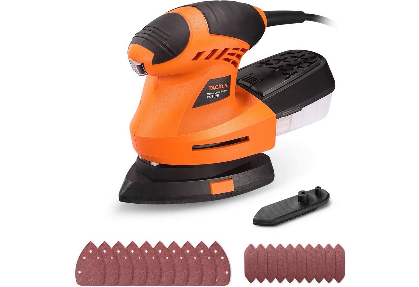 TACKLIFE PMS02B MultischleiferMausschleifer 12000RPM mit 20 Schleifpapier, 360° drehbares Schleifpad, staubdichter Schalter