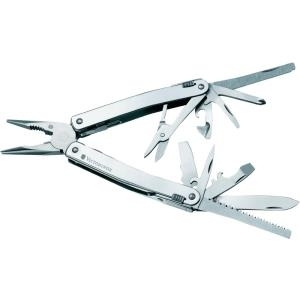 | Werkzeuge | Kombizange, Spitzzange, Drahtschneider, Schlitzschraubendreher, Kreuzschraubendreher, Flaschenöffner, Kistenöffner, Klinge, Schere, Metallfeile, Metallsäge, Holzsäge, Säge, Ahle, Holzmeißel, Schaber, Abisolierzange, Drahtbieger, Drahtschaber, Dosenöffner, Ziehhaken, Korkenzieher-Kupplung |