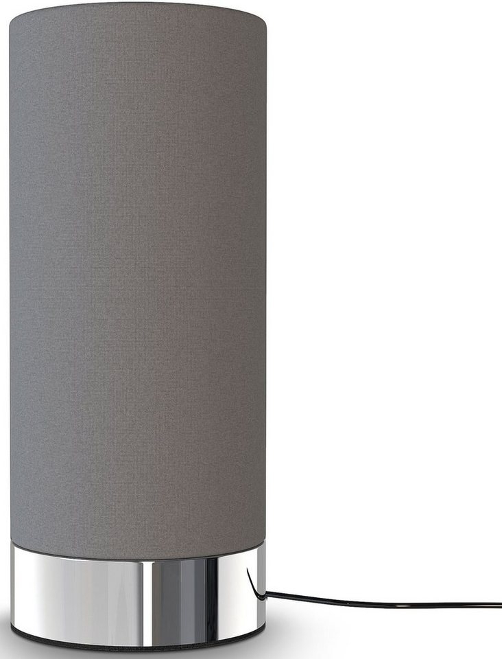 Die Tischleuchte mit grauem Stoffschirm und chromfarbenem Sockel vereint modernes Design mit Funktionalität. Dank der Touchfunktion am Sockel können Sie die Helligkeit in drei Stufen (25, 50 und 100 Prozent) ganz einfach anpassen. Mit einem 150 cm langen Kabel ist die flexible Positionierung der Lampe möglich. Die optimale Größe von 110 x 244 mm (DxH) macht sie ideal für Nachttische oder Kommoden. **Highlights** - Touchdimmer am Sockel für einfache Bedienung - 3 Dimmstufen (25, 50, 100 Prozent) für individuelle Lichtanpassung - Grauer Stoffschirm sorgt für sanfte Lichtfilterung - Flexibles 150 cm langes Kabel für optimale Platzierung - Kompakte Maße von 110 x 244 mm (DxH) für vielseitige Einsatzmöglichkeiten **Produkteigenschaften** - 1-flammige Nachttischleuchte - E14 Fassung für dimmbare Leuchtmittel mit max. 40 Watt - Sockel in Chrom - Energiesparlampen können zu Fehlfunktionen führen - Leuchtmittel nicht inklusive **Lieferumfang** - Tischleuchte 1-flammig - Leuchtmittel nicht enthalten