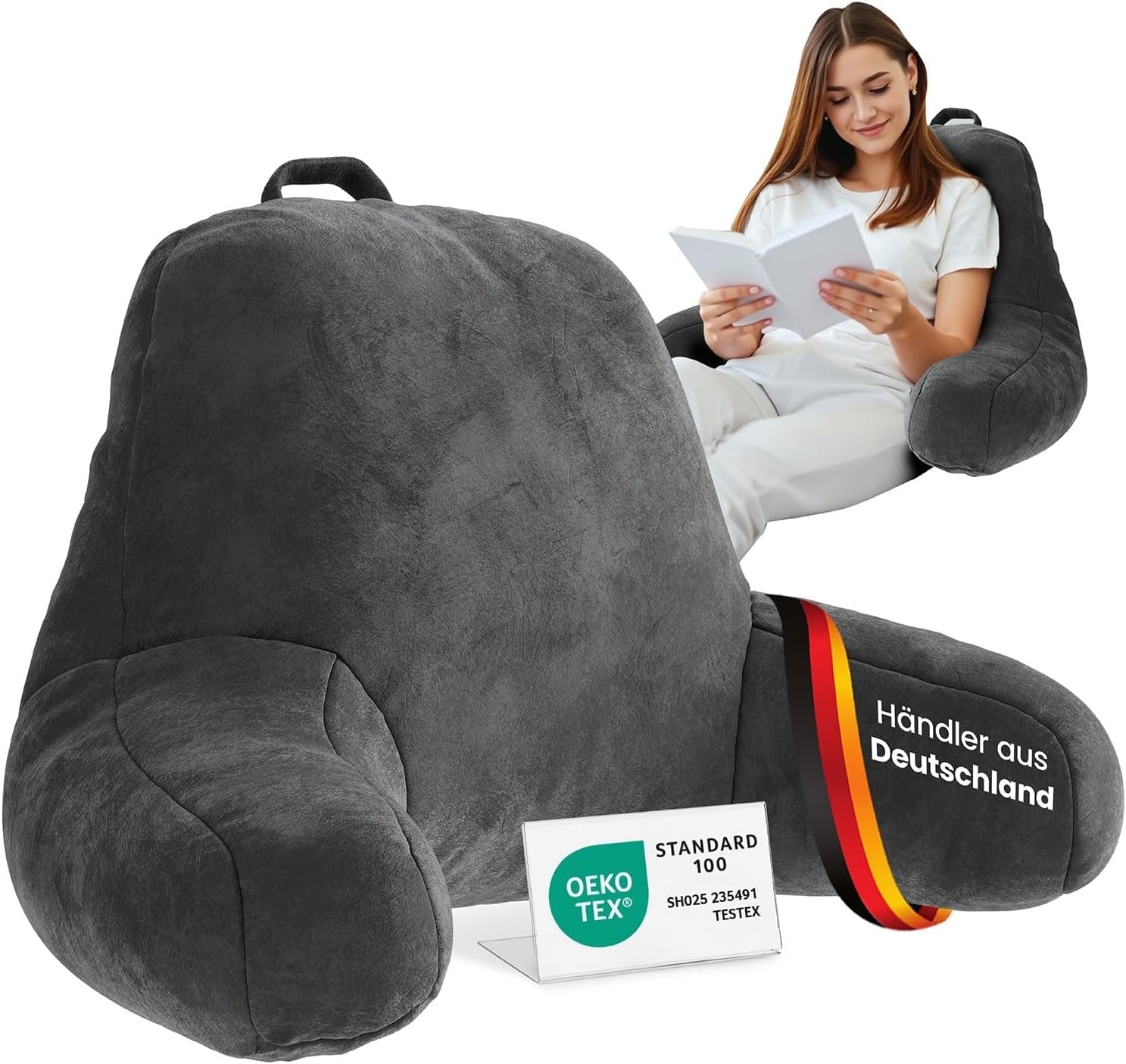 Das maxVitalis Rückenkissen mit Armlehnen bietet Ihnen bequemen Halt und Komfort für Rücken, Kopf und Nacken. Mit den Maßen 76 × 46 × 40 cm ist es ideal für Couch und Bett. Ähnlich einem Keilkissen entlastet es die Bandscheiben und fördert eine gesunde Körperhaltung. Der praktische Tragegriff ermöglicht einen einfachen Transport, während die gepolsterten Armlehnen für zusätzlichen Komfort sorgen. Perfekt zum Lesen und Entspannen. **Highlights** - Bietet Unterstützung für Rücken, Kopf und Nacken - Ähnlich einem Keilkissen zur Entlastung der Bandscheiben - Mit praktischem Tragegriff für einfachen Transport - Gepolsterte Armlehnen für zusätzlichen Komfort - Ideal zum Lesen und Entspannen **Produkteigenschaften** - Maße: 76 × 46 × 40 cm - Unterstützt eine gesunde Körperhaltung - Mit gepolsterten Armlehnen - Praktischer Tragegriff für einfachen Transport - Perfekt für Couch, Bett und Bürostuhl