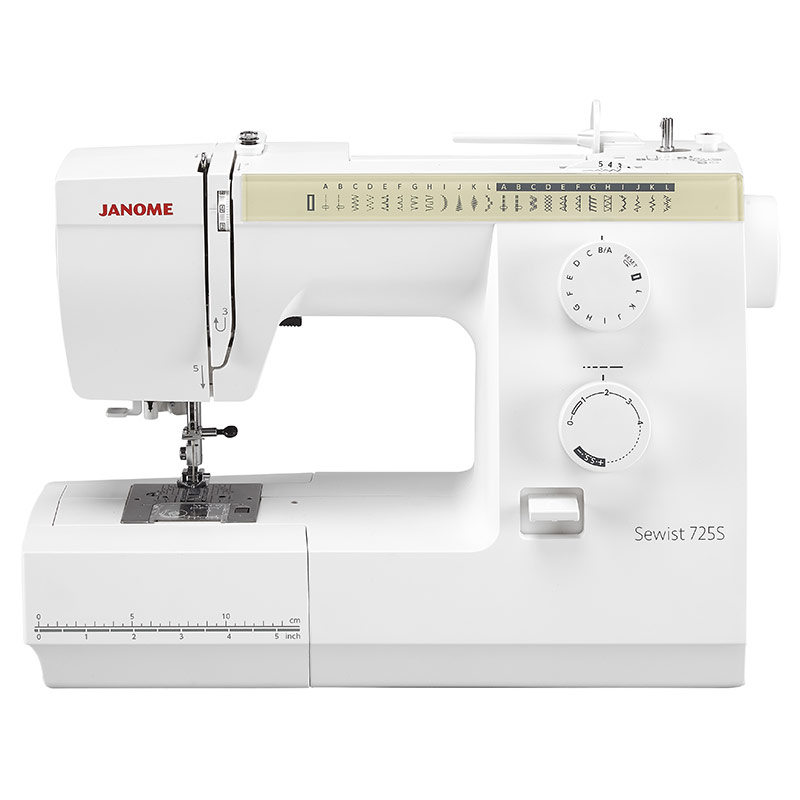 Die Janome Sewist 725S ist eine mechanische Nähmaschine, die für ihre Benutzerfreundlichkeit und Vielseitigkeit bekannt ist. Mit einer maximalen Nähgeschwindigkeit von 860 Stichen pro Minute und einer Breite von 45 cm bietet sie sowohl Hobbyisten als auch Profis eine solide Grundlage für verschiedenste Nähprojekte. Die Maschine kommt in einem ansprechenden weißen Design und ist mit einer Vielzahl praktischer Funktionen ausgestattet, die das Nähen erleichtern.