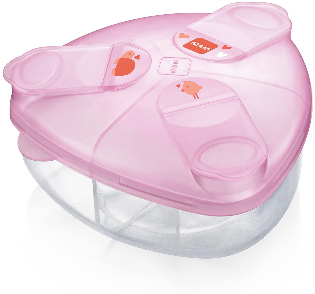 | Name | MAM Milchpulverspender, Milchpulver Box zum einfachen Befüllen von Babyflaschen, Milchpulverportionierer fasst bis zu 3 Portionen, 0+ Monate, Schildkröte/Vogel |