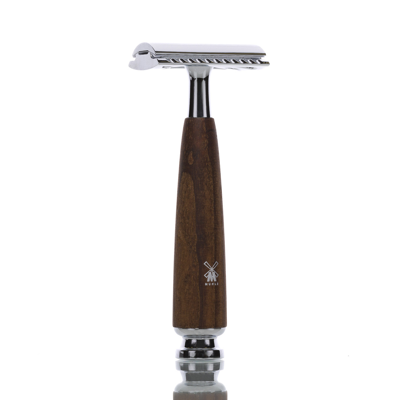 Der Rasierhobel R220 SR RYTMO von Mühle bietet eine solide Verarbeitung und ein angenehmes Gewicht, das in der Hand liegt. Durch den geschlossenen Kamm wird die Gefahr von Schnittverletzungen minimiert. Zudem vermittelt er beim Gebrauch ein leidenschaftliches und handgemachtes Gefühl.