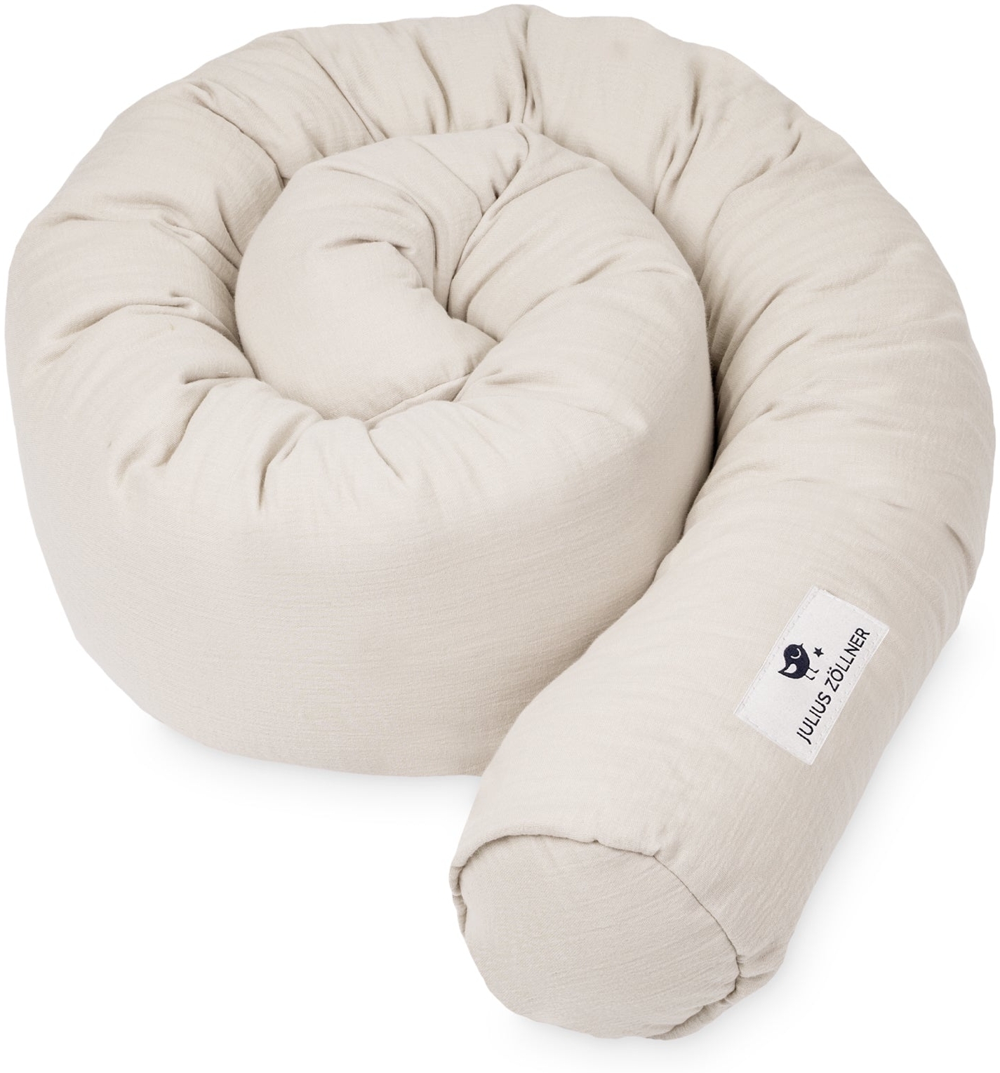 Die Julius Zöllner Nestchenschlange aus Musselin in der Farbe Sand bietet Ihrem Baby ein schützendes Nest und sorgt für Geborgenheit. Mit einer Länge von ca. 180 cm und einem Durchmesser von 14 cm schützt sie vor Verletzungen am Bettgitter und bietet Wärme. Hergestellt aus 100% Musselin-Baumwolle und gefüllt mit 100% Polyester Hohlfaserflocken, ist die Bettschlange bis 40 Grad Celsius waschbar und nach STANDARD 100 by OEKO-TEX® zertifiziert. Hergestellt in Deutschland. **Highlights** - Schützt vor Verletzungen am Bettgitter - Verhindert Einklemmen der Finger - Bietet Geborgenheit und Wärme - Hochwertiges Material - Made in Germany **Produkteigenschaften** - Maße: ca. 180 cm Länge, 14 cm Durchmesser - Material: Füllung aus 100% Polyester Hohlfaserflocken, Stoff aus 100% Musselin-Baumwolle - Waschbar bis 40 Grad Celsius - Zertifiziert nach STANDARD 100 by OEKO-TEX® - Hergestellt in Deutschland **Lieferumfang** - 1x Nestchenschlange (Babybett nicht im Lieferumfang enthalten)