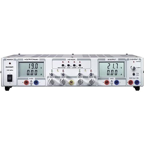 • Das Voltcraft VSP 2405 Labornetzgerät ist einstellbar von 0.1-40 V/DC und 0-5 A mit einer Leistung von 409 W